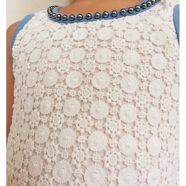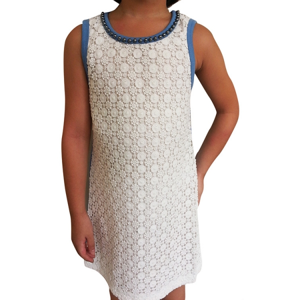 Blue A-Line Crochet Dress